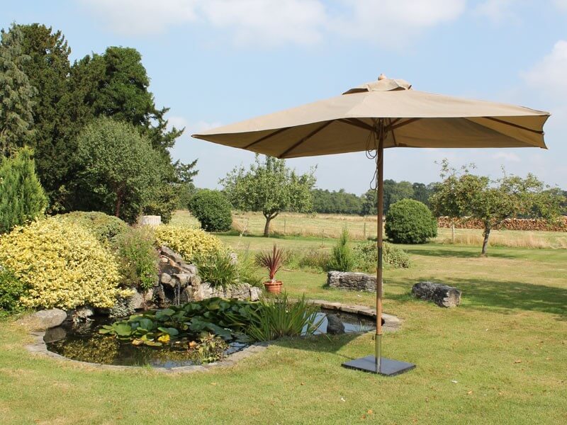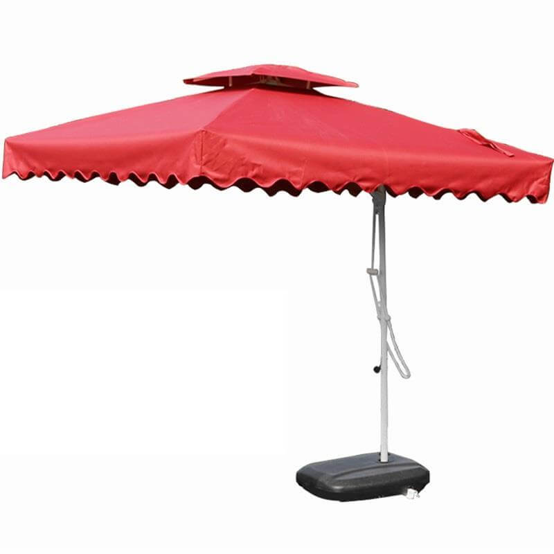 Luxusní slunečník s boční nohou je velmi žádaný na terasy rodinných domů nebo pro zahrádky restaurací v historických centrech měst především pro své multifunkční vlastnosti. Slunečník má neobvyklý vzhled, je bytelný a přitom lehký, snadno se ovládá, koruna slunečníku se otáčí podle úhlu dopadajících slunečních paprsků a některé typy se dají naklápět. Boční nosná tyč nevadí provozu pod slunečníkem.